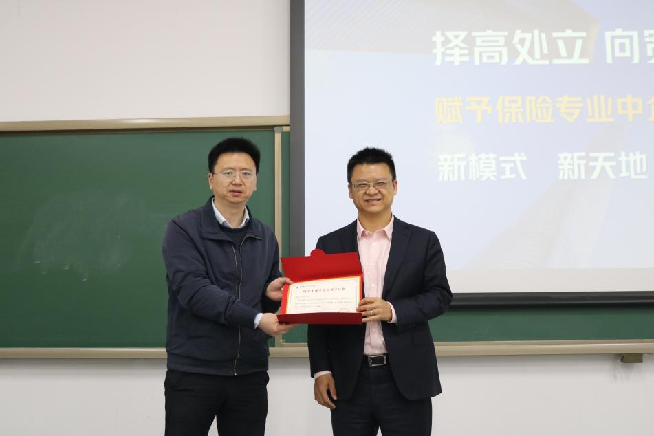 讲座结束后,周桦院长向蒋铭先生颁发了纪念证书,并对他精彩而富有启发性的讲座表示衷心感谢。此次讲座不仅加深了同学们对保险中介行业的了解,也激发了他们深入参与保险科技创新与实践的热情。