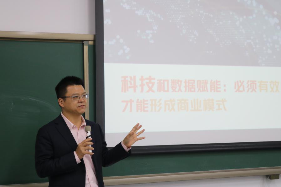 大童保险集团董事长蒋铭先生应邀到新葡萄官网讲授《保险科技》课程