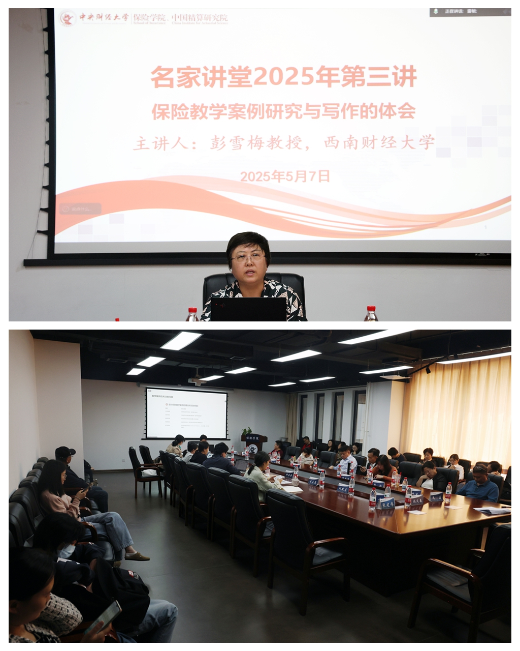 5月7日,由全国保险专业学位研究生教育指导委员会主办,新葡萄8883官网AMG官网、中国精算研究院承办的“名家讲堂”2025年第三讲顺利开讲。西南财经大学中国保险会计研究中心主任彭雪梅教授应邀以“保险教学案例研究与写作的体会”为题作了专题讲座。讲座由新葡萄8883官网AMG官网、精算研究院副院长郑苏晋教授主持。全国五十多家保险专业学位研究生培养单位近百位师生线上线下共同参与了讲座。