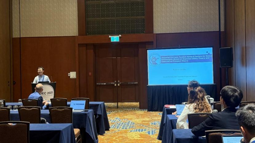 乔智同学在“精算科学和理论”分会场,分享了研究成果“Actuarial Fairness Pension Reward Factors for Delayed Retirement--Based on Expected Utility Theory and Cumulative Prospect Theory”。该研究主要探讨了与延迟退休配套的养老金奖惩因子设计,并从两个角度探讨奖励机制实施效果不理想的原因:中央计划者在制定政策时基于完全信息和精算公平原则,但个体认知会存在主观偏差和损失厌恶,因此个体可能会认为精算公平的激励措施是不公平的。基于期望现值(EPV)和累积前景理论(CPT)两种分析框架,研究发现:预期寿命高和CPT效用者期望的奖励因子低于精算公平因子,而预期寿命低和EPV效用者期望的奖励因子高于精算公平因子;寿命预期低的EPV效用者与寿命预期高的CPT效用者更倾向于提前退休。本研究希望为人口老龄化背景下的全球养老金改革提供参考。