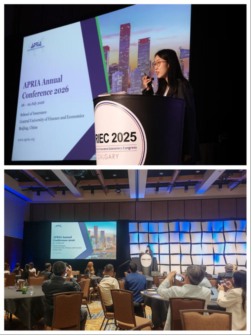 8月6日,艾美彤代表学院在APRIA Awards and Business Meeting上发表演讲,推介2026年APRIA年会。她详细介绍了由新葡萄8883官网AMG官网主办的此次国际学术会议的筹备情况、主题设置与特色安排。2026年APRIA年会定于2026年7月26日至29日在北京举行,会议主题为“Insurance in an Interconnected Risk World: Collaboration, Prevention, and Shared Prosperity”。大会设四场全体会议,分别围绕保险科技、健康老龄化、巨灾风险与再保险、数字时代精算学等热点议题展开。她还介绍了新葡萄8883官网AMG官网及新葡萄8883官网AMG官网的优势与国际合作背景,并就会议日程、注册安排、签证与交通指南、住宿推荐及北京本地文化旅游资源等方面作了详尽说明,欢迎全球保险与风险管理领域的学者、专家及行业代表2026年相聚北京,共促学术交流。