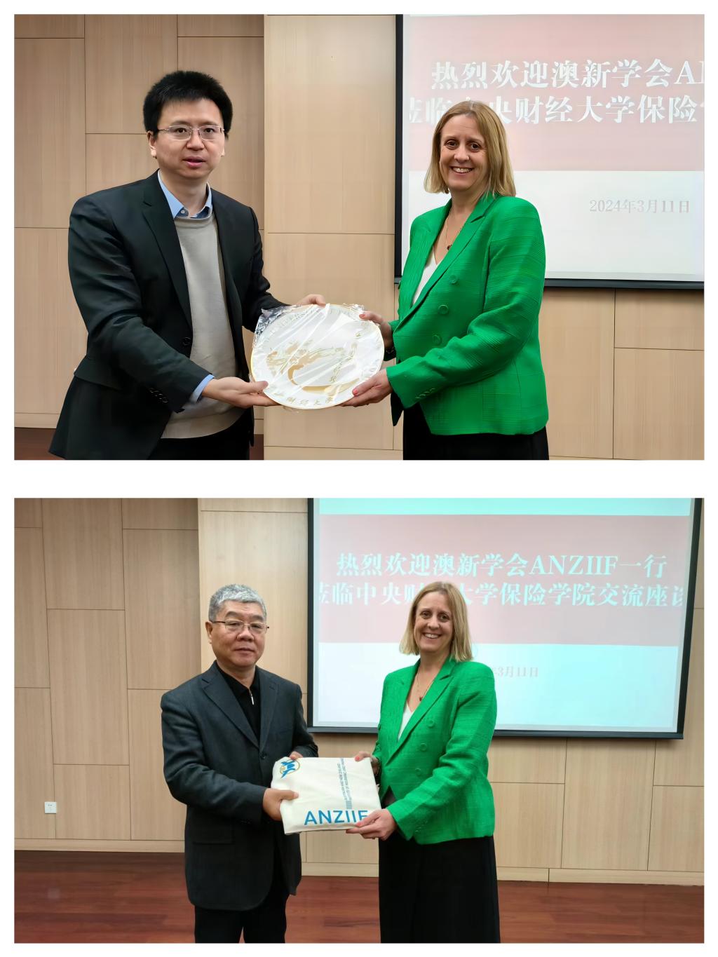 交流讨论环节,新任总裁Katrina Shanks女士进一步介绍了澳新学会对自然灾害治理和行业规范及理赔标准化等方面做出的努力和成绩。周桦院长期望双方在未来合作中,开展学生短期课程、赴澳洲实习实践,并就学院学生获取澳新学会各级职业资格等方面提出了建设性想法,双方就此展开了热烈的讨论和交流,并达成初步意向。会议结束,双方互赠纪念品并合影留念。