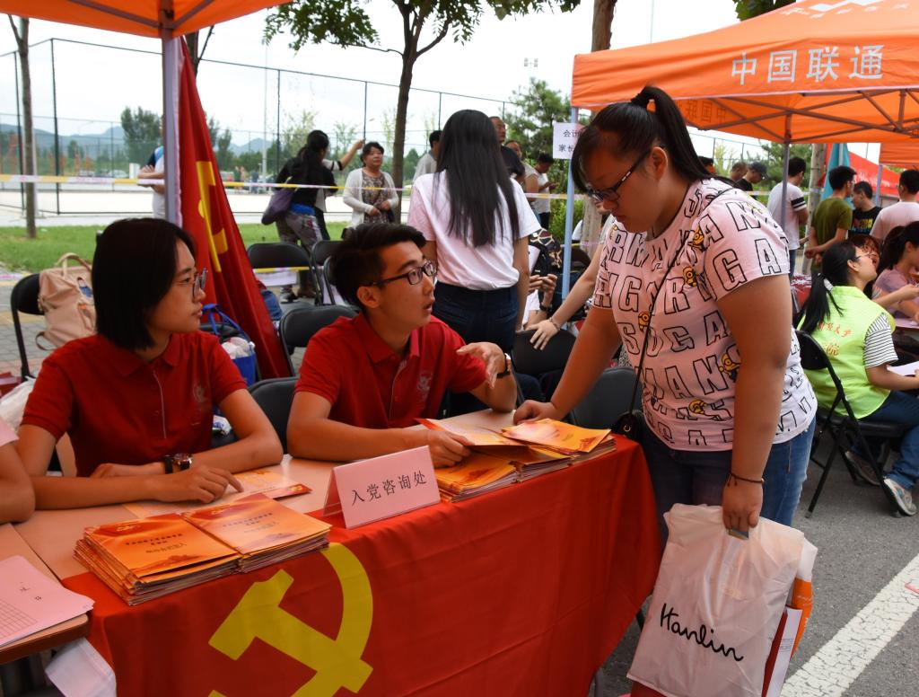 当天到咨询处询问入党事项的新生络绎不绝,“请问大学怎么才能入党啊”,“大学入党是不是很难啊”,“我什么时候可以递交入党申请书?”,“入党会影响申请出国留学吗?”。。。。。。对于这些问题,党员志愿者们耐心细致地一一为他们解答。考虑到很多家长也很关心孩子的入党问题,咨询处的志愿者们还在家长来往密集的地方派发了宣传折页并解答疑问。一位新生家长表示自己作为一名老党员,非常希望孩子能够入党,他认为入党能够促进青年人成长成才、有责任有担当。另一位家长表示,自己虽不是党员,但对党组织充满了向往,希望自己的孩子在大学能有机会入党,而新葡萄8883官网AMG官网的入党宣传折页正好能帮助他快速了解入党程序,可以说是发放得非常及时。