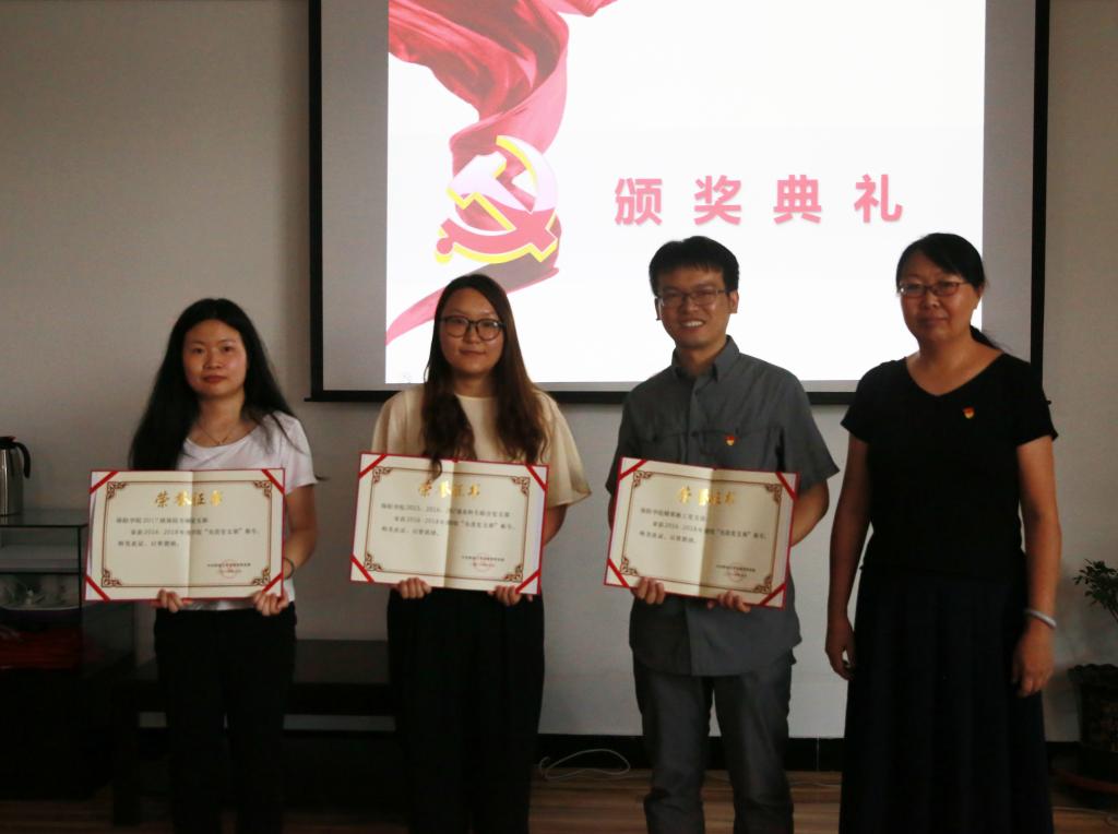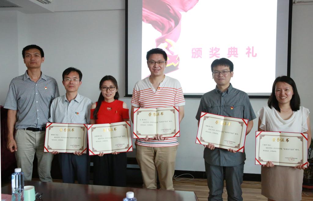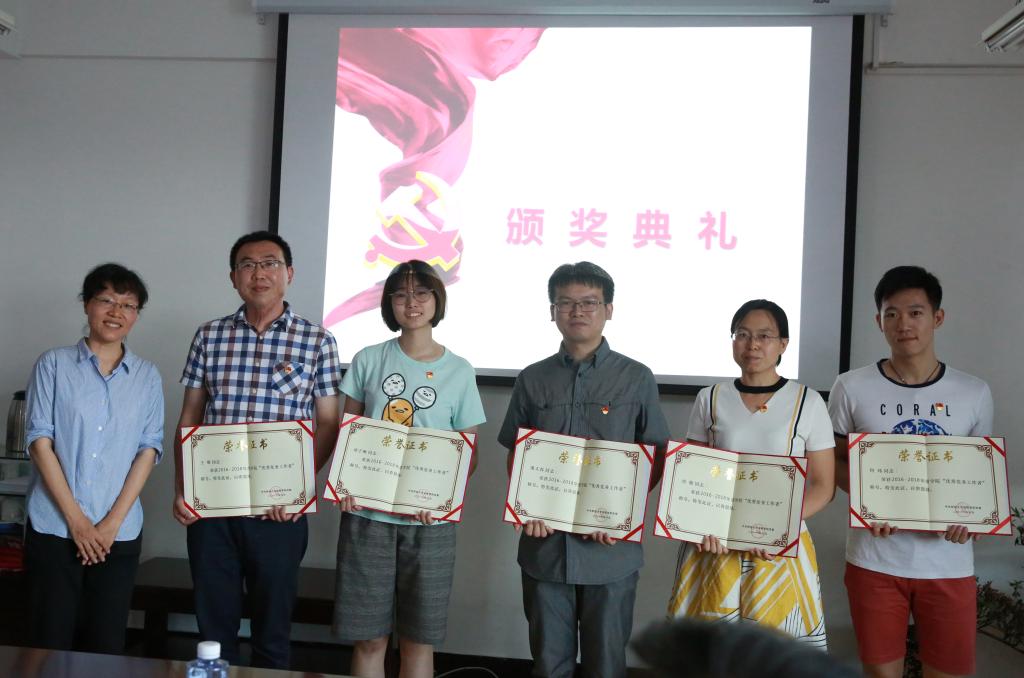 会上,学院党委组织员包英娟宣读《关于表彰2016—2018年度新葡萄8883官网AMG官网先进党支部、优秀共产党员、优秀党务工作者的决定》,由副书记张楠楠老师、副院长周明老师、组织员包英娟、党委委员刘宁静老师为优秀党务工作者、优秀教工党员、先进党支部和优秀学生党员颁发证书并合影留念。