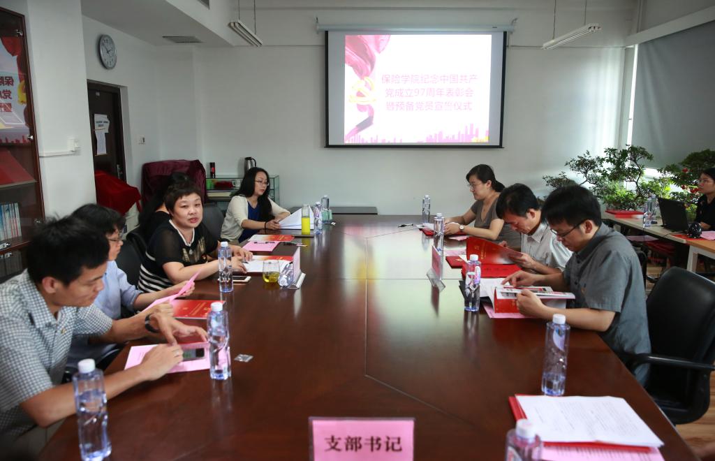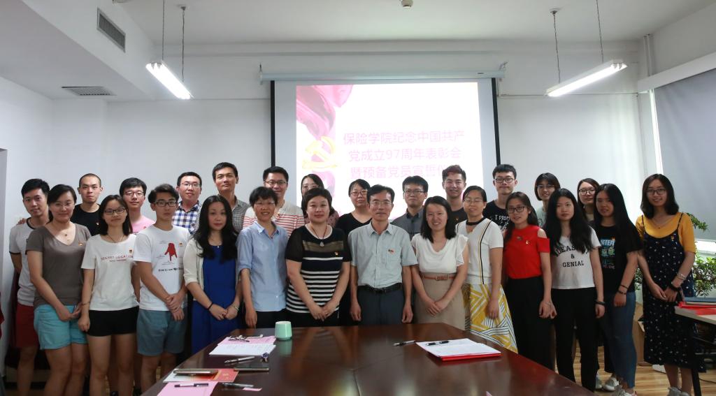 在获奖代表发言环节,“先进党支部”代表、精算教工党支部书记池义春老师介绍了精算教工党支部的建设与成绩,党支部通过多途径学习,有序开展党建工作,多名党员参与学院行政管理工作,有效提升了管理水平。“优秀教工党员”代表、社保行政教工党支部党员褚福灵教授,提出两点心得,一是坚定信念,作为有二十多年党龄的老党员,深感自豪并且责任重大,从过去温饱生活到如今富裕安康,更要坚持道路自信、理论自信、制度自信和文化自信;二是严于律己,作为党员要有坚定的政治立场原则,作为教师要秉承教书育人、严谨学风的宗旨。“优秀学生党员”代表2016级保险学、社保、精算学研究生联合党支部书记王圆圆表示,青年人要严格要求自己,胸怀远大理想,刻苦学习,锤炼坚定意志,作为党员,要做到权为民所用、情为民所系、利为民所谋。“优秀党务工作者”代表、2017级保险学、社保研究生联合党支部书记何玮总结党务工作经验道,教师生涯勤恳工作,力求处处上心、事事尽心;学生时代做好表率,达到不愧于心、不慢于行。