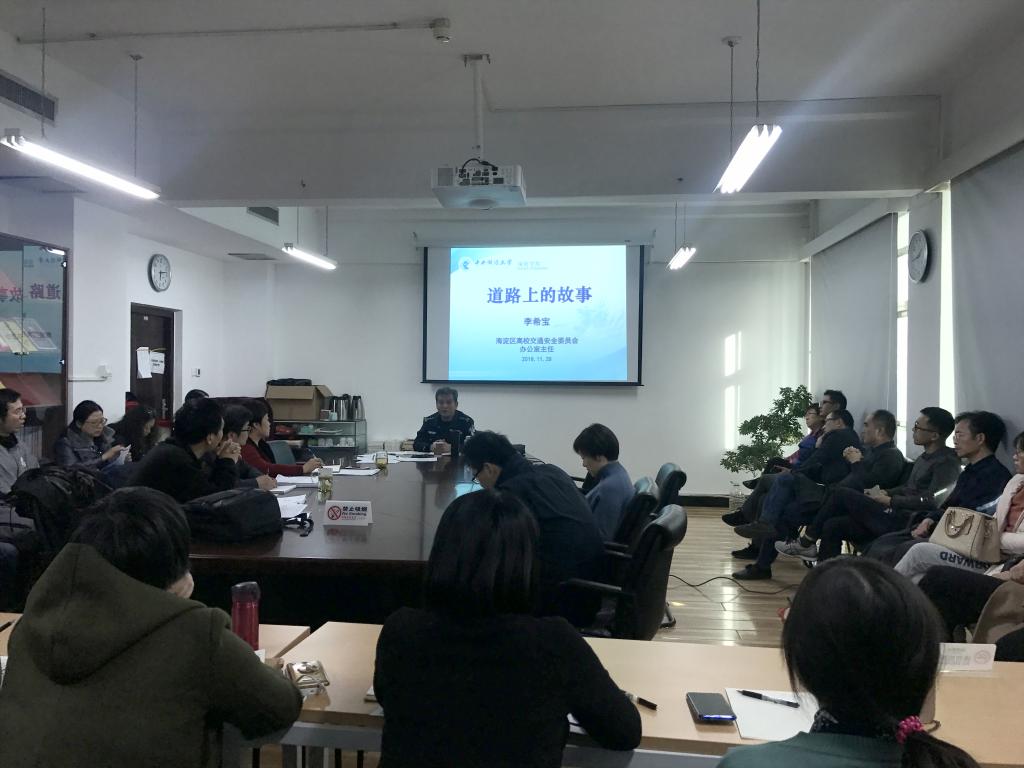 为进一步增强学院师生交通安全意识,培养师生遵守交通规则、维护交通秩序的良好美德,有效预防交通安全事故的发生,11月28日下午,新葡萄8883官网AMG官网党委特邀海淀区高校交通安全委员会办公室主任李希宝警官为师生进行了交通安全知识讲座。讲座由学院党委书记王颖主持。