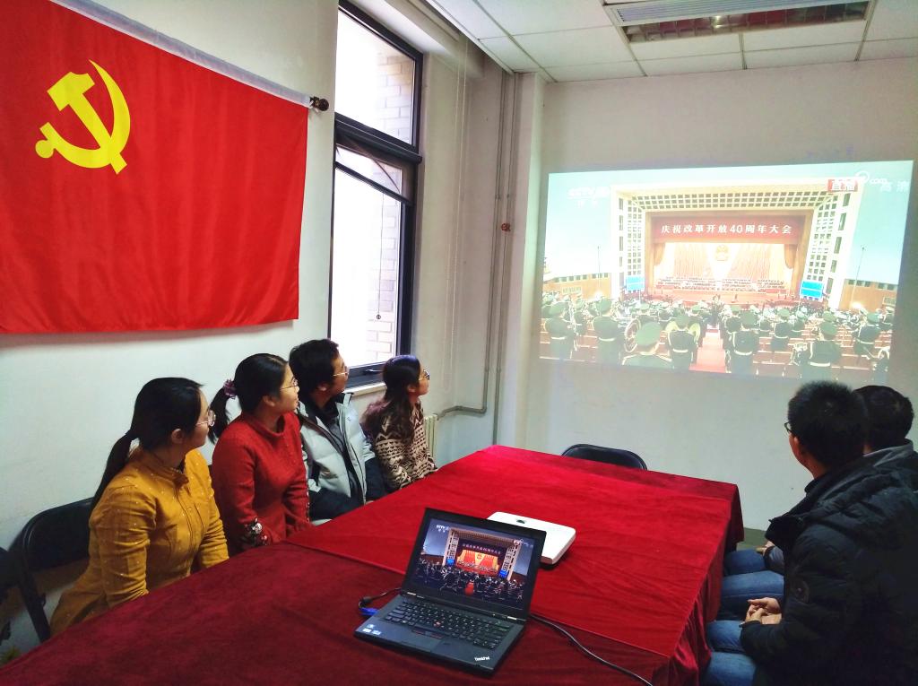 院党委书记王颖:40年前,党的十一届三中全会作出以经济建设为中心、实行改革开放的历史性决策,开启了天翻地覆的伟大变革。40年来,在中国共产党领导下,中国人民用双手书写了国家和民族发展的壮丽史诗。改革开放只有进行时,没有完成时。唯有坚持改革不停顿、开放不止步,把新时代改革开放的旗帜举得更高更稳,才能奋力推动中国号巨轮不断破浪前行、扬帆致远。作为基层党组织书记,要以更大的责任、更多的担当,带领广大党员攻坚克难,为学校的发展做出自己的贡献。
