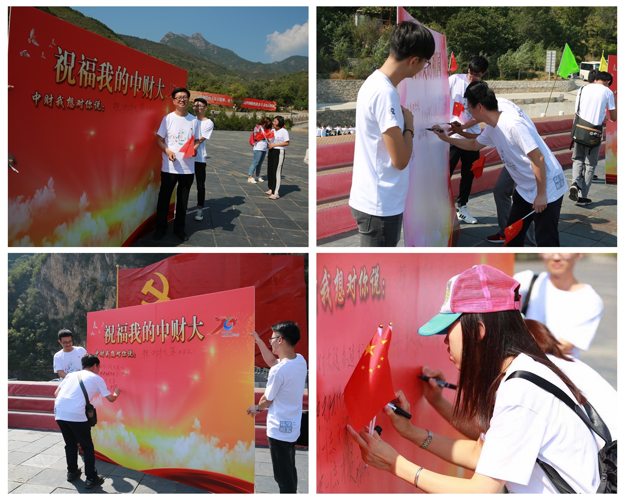 在“祝福留言”主题环节中,新葡萄8883官网AMG官网党委书记王颖,院长李晓林,学院党委委员、纪委委员,各党支部书记、教师党员、学生党员先后在“祝福我的祖国”、“祝福我的中财大”留言板上写下对祖国、对中财的深切祝福。“祝祖国早日实现伟大的中国梦”、“神州奋起,国家繁荣,江山不老,祖国常春”、“创一流大学,育一流才贤”等,一字一句饱含对祖国、对中财大的热爱,不忘初心共奋进,齐声祝愿祖国好。