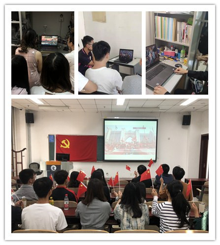 10月1日上午,庆祝中华人民共和国成立70周年大会在天安门广场隆重举行,新葡萄8883官网AMG官网2017、2018、2019本科生联合党支部组织党员及入党积极分子分别在教室、寝室观看直播。