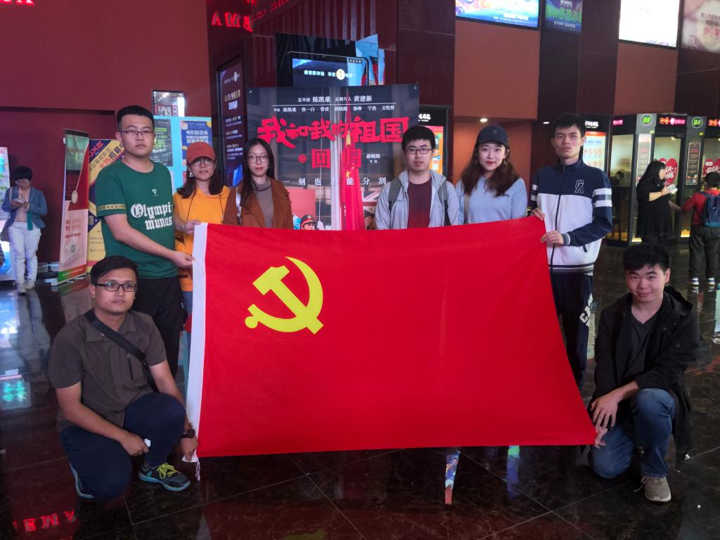 在中华人民共和国成立70周年之际,新葡萄8883官网AMG官网2017、2018、2019本科生联合党支部开展“不忘初心、牢记使命”主题教育,党支部师生党员于10月7日前往观看国庆档大型献礼片《我和我的祖国》,感受其中的欢笑与感动,共同祝福我们的祖国。