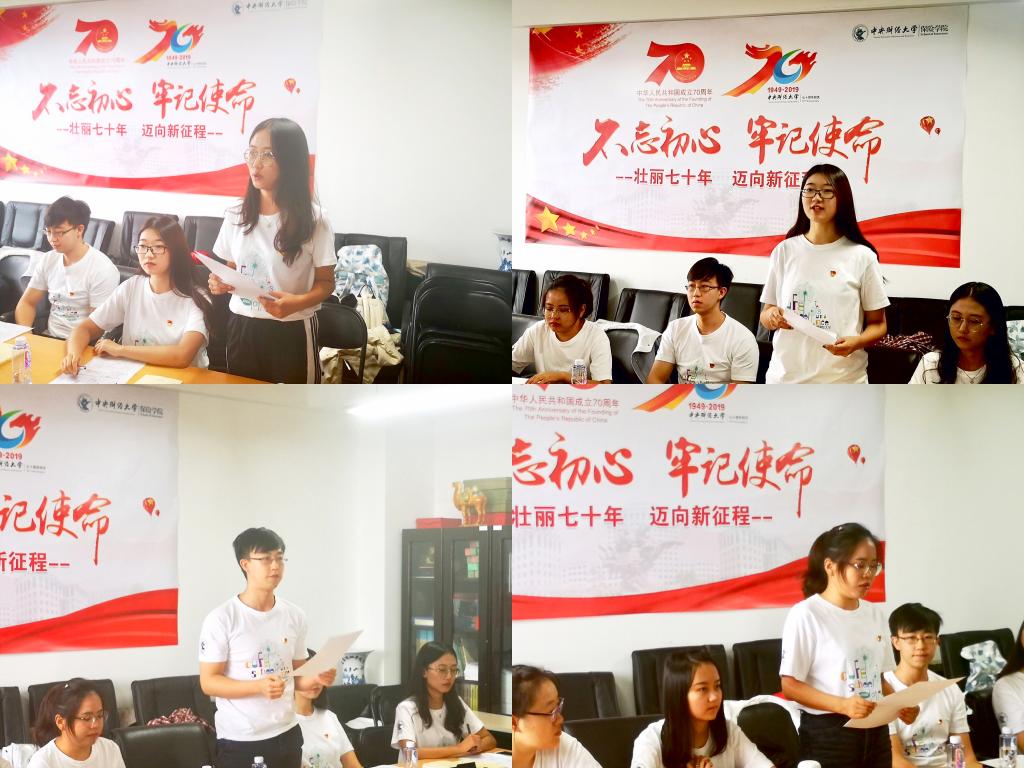 在听完两位老人的故事后,2016级本科生党支部的党员们纷纷表达自己的感动与敬意。支部副书记、优干保研的喇新悦表示:受命之日,则忘其家;临阵之时,则忘其亲;临鼓之时,则忘其身。是无数像吴奶奶、于爷爷一样的建设者在新中国百废待兴的昨天种下一棵棵大树,我们后辈才得以生活在幸福和平的时代,中国才得以如今骄傲的姿态屹立于世界之林!我们想怀着最最深切的感动,向他们说一声“谢谢”。支部组织委员、推免至北京大学地温中卉表示:听完两位老师的经历,将更有热情和激情投入到精算行业当中,努力学好专业知识,将理论与实践相结合,为这个行业献出自己的一份力。正在准备出国留学的党员李泽宇表示:听了两位老师的讲述,更加坚定了自己共产党员的初心,希望自己能够继续积极地去发挥党员模范带头作用,努力学习专业知识,保持良好的生活习惯和工作作风,在学习生活中加深对国际形势的理解,力求能够成为一名拥有真才实干的党员,在学成后回国报效祖国。支部纪检委员、正在准备奔赴基层就业的雍婷婷表示:从小有个军旅梦,今天听到爷爷奶奶们的战争时期的故事,敬仰之情油然而生,在毕业之际,我的就业方向是西部地区、基层区域,到祖国最需要我们的地方去,用中财大教会我的本领回报社会,回报祖国。