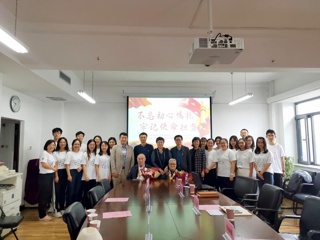 纪念章获得者吴焕智老师、于金富老师与师生党员进行了交流。两位老师虽年近九旬,但鹤发童颜、精神矍铄,在回忆起一生与家国相伴成长的岁月时,依旧难掩满腔的热情。离休干部吴焕智老师讲述了在解放战争中参加儿童团、巧送鸡毛信、在敌军炮火下行军八天八夜的动人故事,讲到激动之时,还给大家唱起了红色岁月中的“流行”歌曲。讲到新中国建立的不易,无数先辈用鲜血染红了五星红旗,他们的牺牲换了今天的幸福生活。吴老师勉励各位青年学生党员,在即将毕业面临人生选择的时候,一定要保持共产党员的初心,坚定共产主义信仰,为祖国和人民贡献力量。于金富老师讲述了在新中国建设中的历程和坎坷,从历史亲历者的角度,通过生动鲜活的例子,表达了共产党与人民群众的深厚感情;通过回忆在中财大学习、工作的往昔,为各位同学讲述了中财发展历程;最后于老师勉励各位青年学生党员,珍惜今天来之不易的学习机会,深入学习习近平新时代中国特色社会主义思想,提高政治觉悟和政治站位,在广大同学中做出表率。