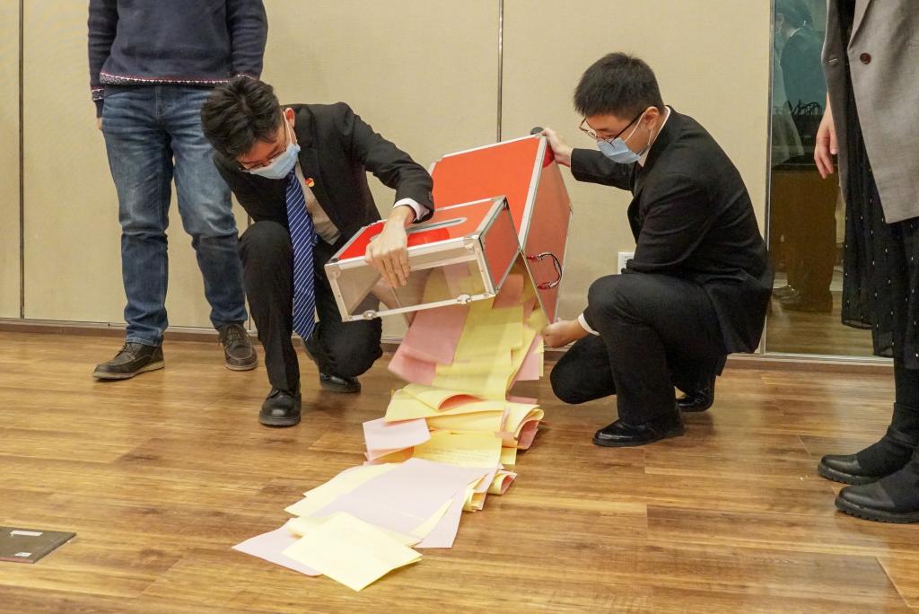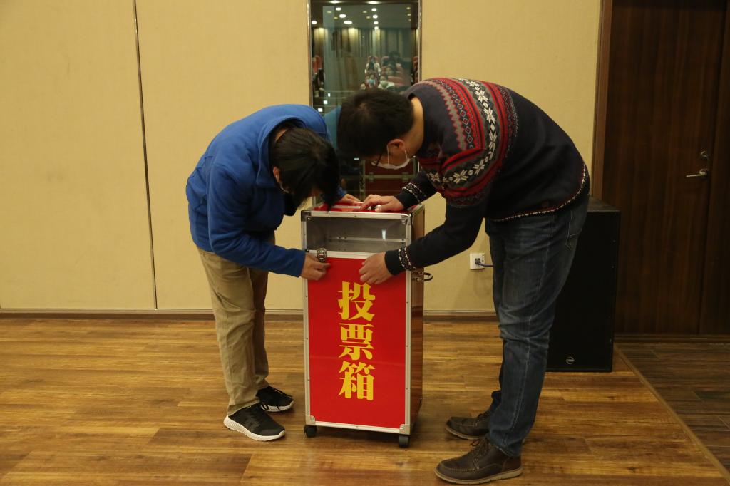 选举过程由总监票人冯帅主持,以无记名投票方式进行差额选举。选举开始前由监票人毛磊、董洪斌检查投票箱并封箱,随后总监票人冯帅拆封选票,由工作人员发放选票,正式党员填写选票进行选举。在《步步高》的乐曲声中,总监票人、监票人、总计票人、计票人和党员们依次投票。投票完毕后,工作人员现场开箱清点选票,收回的选票与发放票数一致,符合选举办法规定。监票人和计票人共同前往计票室进行计票。