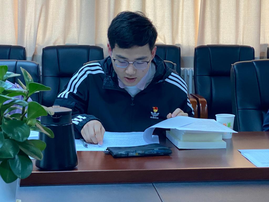2020级保险专硕党支部书记张天源从新生党支部书记的角度出发进行述职,通过不断摸索探寻适合自己支部的党建活动,他表示,在以后的工作中,要严格按照支部学习计划,落实“主讲主问制”学习,丰富党课和支部活动内容。