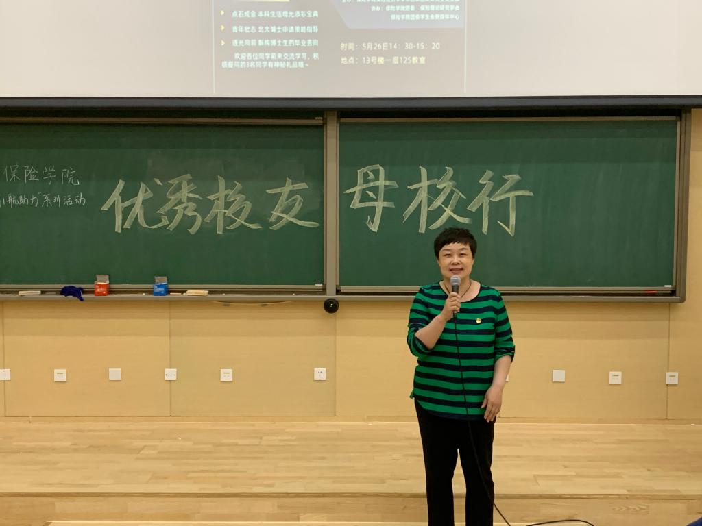 5月26日,在沙河校区13号楼125报告厅,新葡萄8883官网AMG官网党委和保险经济学学术创新团队研究生党支部成功举办了三场“优秀校友母校行”系列讲座。学院党委书记王颖,学院副院长王丽珍,保险经济学学术创新团队研究生党支部书记陈华,学院校友会负责人王庆焕出席讲座,来自学校、新葡萄8883官网AMG官网以及保险经济学学术创新团队研究生党支部的200余名师生聆听讲座,王颖书记到会致辞并全程参与。会前,院长李晓林、院党委书记王颖等老师会见了来校校友并亲切座谈。