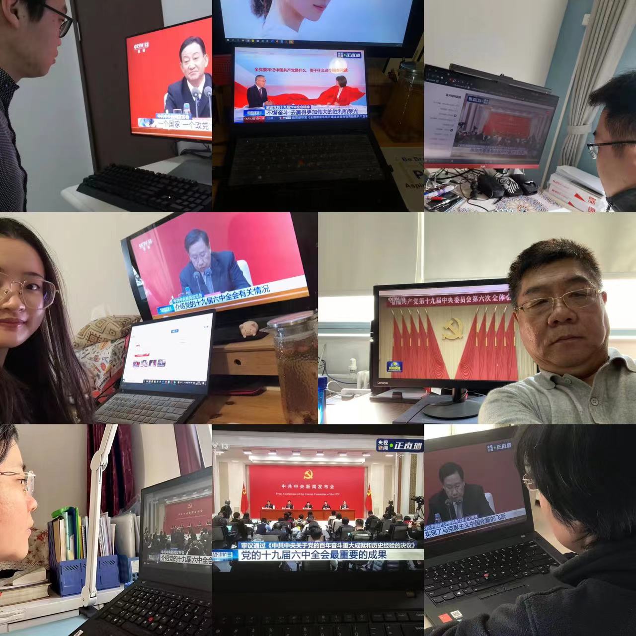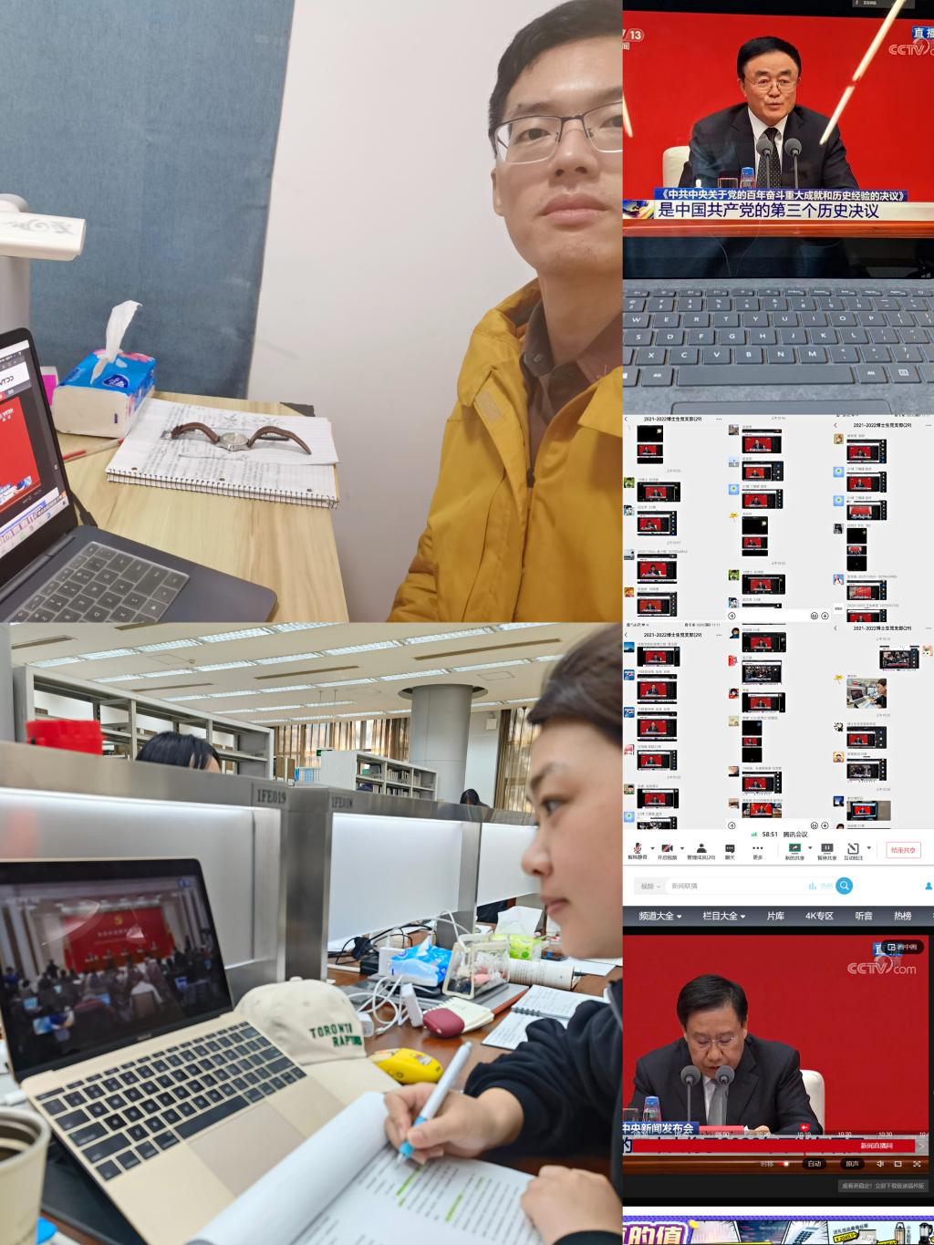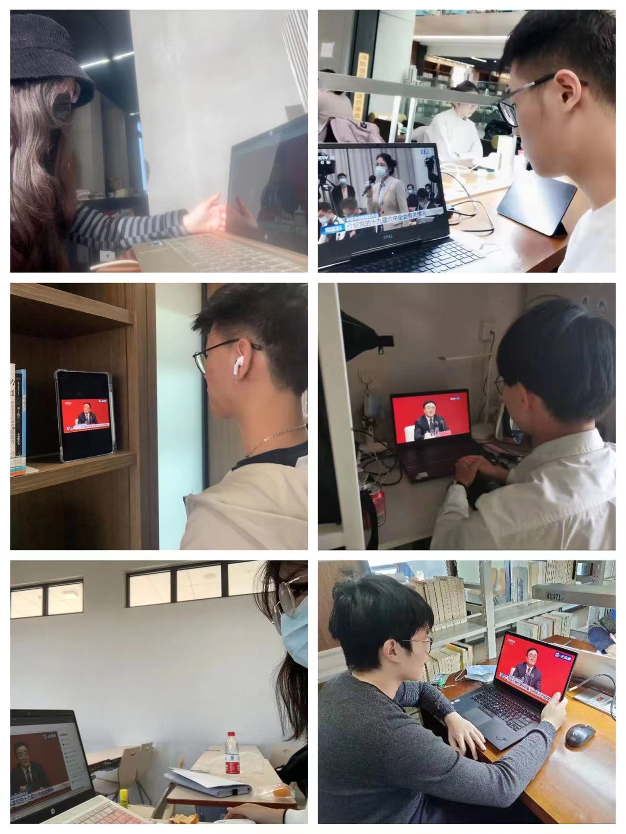 11月12日上午,中共中央召开十九届六中全会新闻发布会,新葡萄8883官网AMG官网党委在13号楼215会议室,组织师生党员观看直播,学院各支部党员也热切关注十九届六中全会,通过电视、网络直播等方式进行学习。