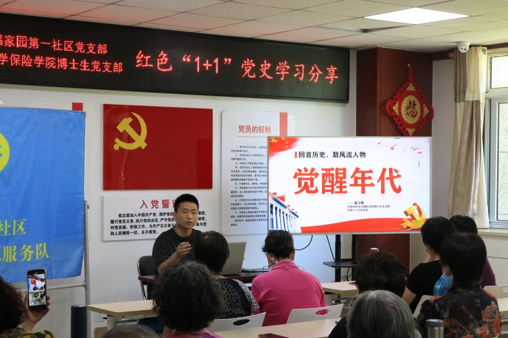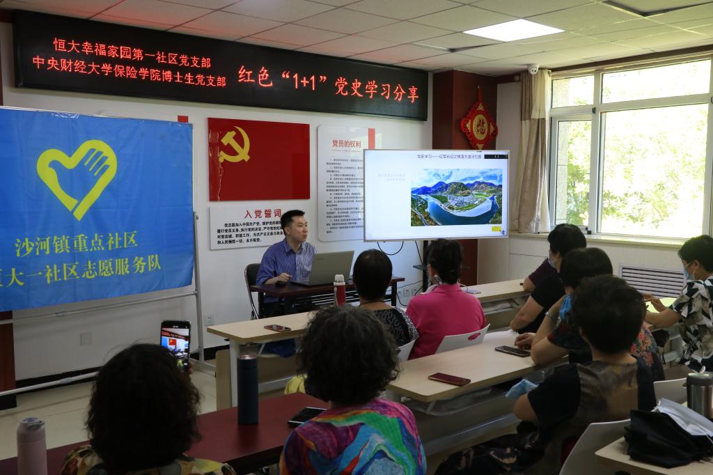 为深化党史学习教育,进一步学党史、悟思想、办实事,2021年2月至7月,新葡萄8883官网AMG官网博士生党支部和沙河地区工委恒大幸福家园第一社区支部委员会共同组织红色“1+1”活动。活动围绕共同庆祝中国共产党成立100周年,党史学习教育,反诈知识宣传,保险、投资相关知识答疑四个方面展开,活动内容丰富多彩,意义深刻。