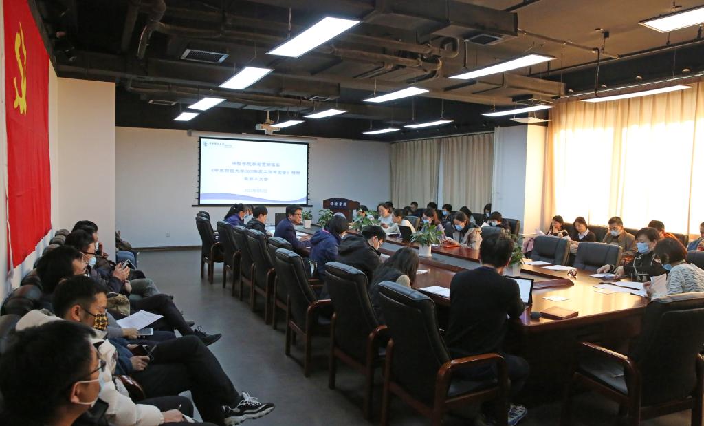 筑梦新征程,立足新起点;奋进新辉煌,一起向未来!2022年3月2日,新葡萄8883官网AMG官网在学院楼13号楼215会议室召开学习贯彻落实《新葡萄8883官网AMG官网2022年度工作布置会》精神教职工大会,会议由学院党委书记王颖主持,学院全体教职工参加会议。
