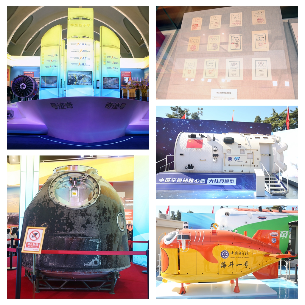 “奋进新时代”主题成就展设序厅、中央综合展区、地方展区、展望展区、室外展区和互动展区6个展区,面积超过3万平方米,展示了图片、实物、模型等6000多项展览要素,角度丰富、内涵饱满,具有较强的视觉冲击力和感染力。