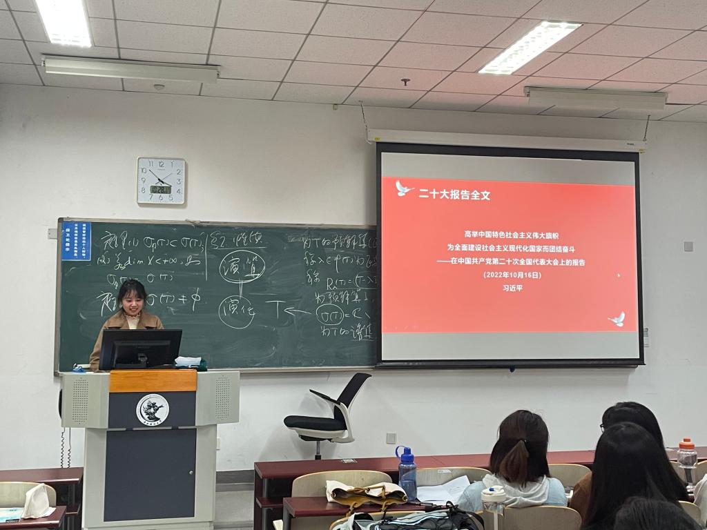 为深入学习宣传贯彻党的二十大精神,引导支部全体党员把思想统一到党的二十大精神上来,让每位党员深刻贯彻二十大精神,学习二十大报告重要内容,10月30日下午,2022级保险专硕党支部在主教309召开“学习二十大,奋进新征程”主题党日活动。2022级保险专硕支委会成员和所有党员参加了学习活动,本次学习二十大精神的主题党日活动由书记尹秀洁主持。