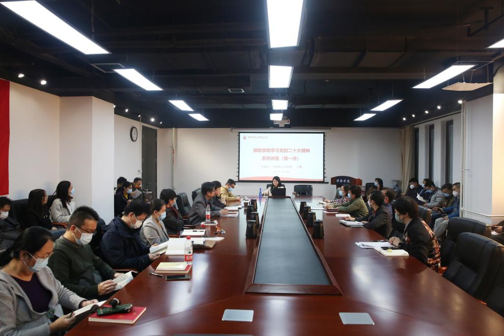 为深入学习宣传贯彻党的二十大精神,持续推动新时代党的创新理论入脑入心,11月16日下午,新葡萄8883官网AMG官网在学院13号楼215会议室召开学习党的二十大精神系列讲座第一讲,此次讲座邀请马克思主义学院王静老师,进行题为《以高质量教育立德树人,推进中国式现代化》专题讲座。讲座由新葡萄8883官网AMG官网党委书记王颖主持,学院全体教工和学生党支部书记、委员参加。