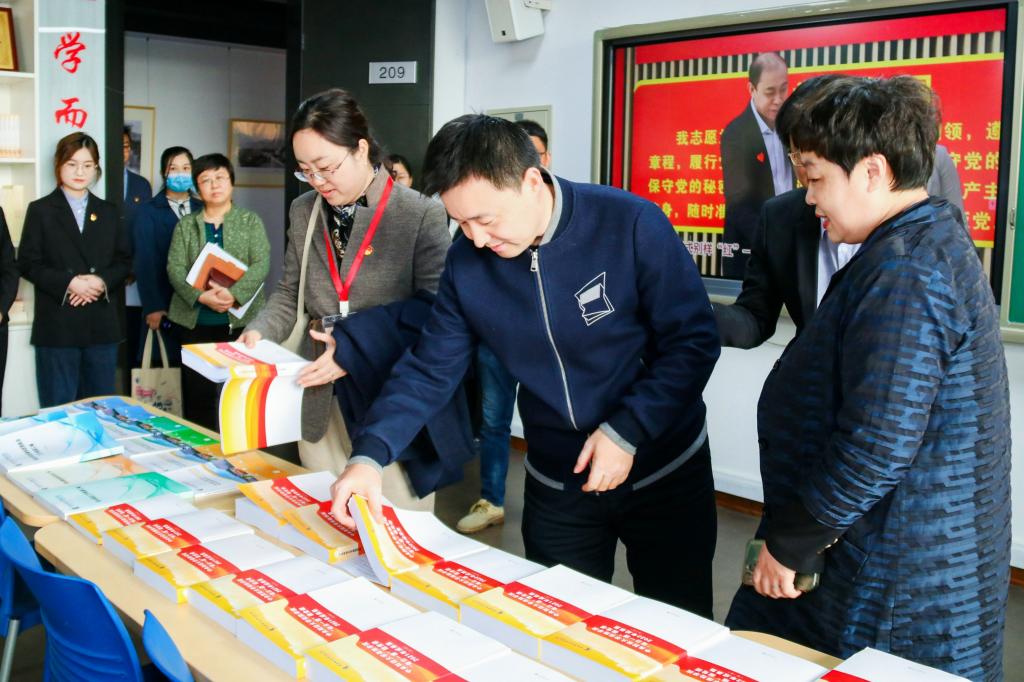 党建组抵达学院楼13号楼后,首先参观了一层由新葡萄8883官网AMG官网党委举办的“伟大征程1921-2021——庆祝中国共产党成立100周年历史图鉴展览”,共同感悟中国共产党一百多年来的辉煌历程和伟大成就。在五层新葡萄8883官网AMG官网办公区,检查组查看了学院的办公环境,观看了党的二十大知识图片展,并对学院“书记来了”访谈工作室和学生发展辅导中心的职能和运行情况进行了深入地了解。在二楼的新葡萄8883官网AMG官网“党员之家”活动室,检查组认真查阅了学院党建和思想政治各项支撑材料、特色材料,并观看了学院制作的党建特色活动宣传片,特别对“党员之家”的制度建设、教育资源配备、党的知识宣传以及活动室的使用情况进行了询问和查看。