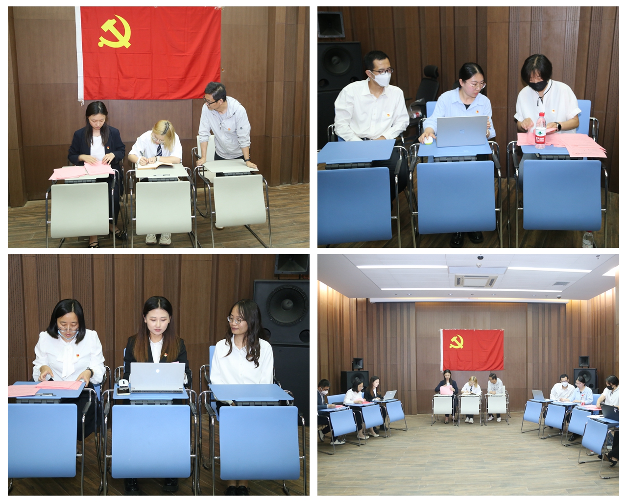 选举过程由总监票人冯帅主持,以无记名投票方式进行差额选举。选举开始前由监票人李晨光、周葳检查投票箱并封箱,随后总监票人冯帅拆封选票,由各党支部书记发放选票,正式党员填写选票进行选举。现场,总监票人、监票人、总计票人、计票人与正式党员排队依次进行投票。投票完毕后,工作人员现场开箱清点选票,收回的选票与发放票数一致,符合选举办法规定。监票人和计票人共同前往计票室进行计票。