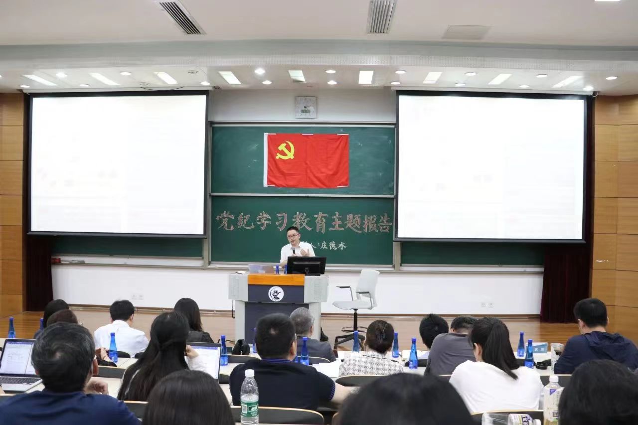 为深入扎实开展党纪学习教育,做到学纪、知纪、明纪、守纪,5月15日下午,新葡萄8883官网AMG官网党委与文化与传媒学院党委、外国语学院党委、国际经济与贸易学院党委、北京学院直属党支部,在主教学楼111教室联合举办党纪学习教育专家辅导报告会,特邀北京大学公共政策研究中心庄德水副主任带来“推进新时代纪律建设,把遵规守纪刻印在心”主题讲座。来自5个学院的师生党员、入党积极分子共300多人参加。