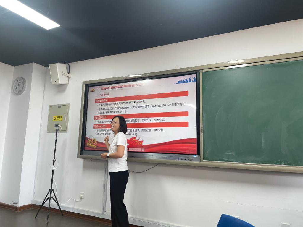 刘健首先从党的整体、以及党组织和党员个人三个层面讲解了深刻认识加强党的纪律建设的重大意义,结合《条例》原文,从政治为魂、全面系统、科学精准、严管与厚爱结合、以及纪严于法并纪法贯通五个方面剖析了《条例》的鲜明特点。她指出学习之后践行的必要性和重要性,强调党员要把党的纪律内化为日用而不觉的言行准绳,学纪知纪明纪守纪最终要落实到守纪上,体现到工作生活的具体行动中。刘健分享了五组共计11个警示案例(包括个案和系列案),分析案例反映的核心问题,并提出了案例的五方面警示:理论学习要入脑入心,精神要时常“补钙”;党员要知法懂法更要守法;要守底线,知敬畏;加强和完善制度建设、规则完善与权利监督;重视家风建设。