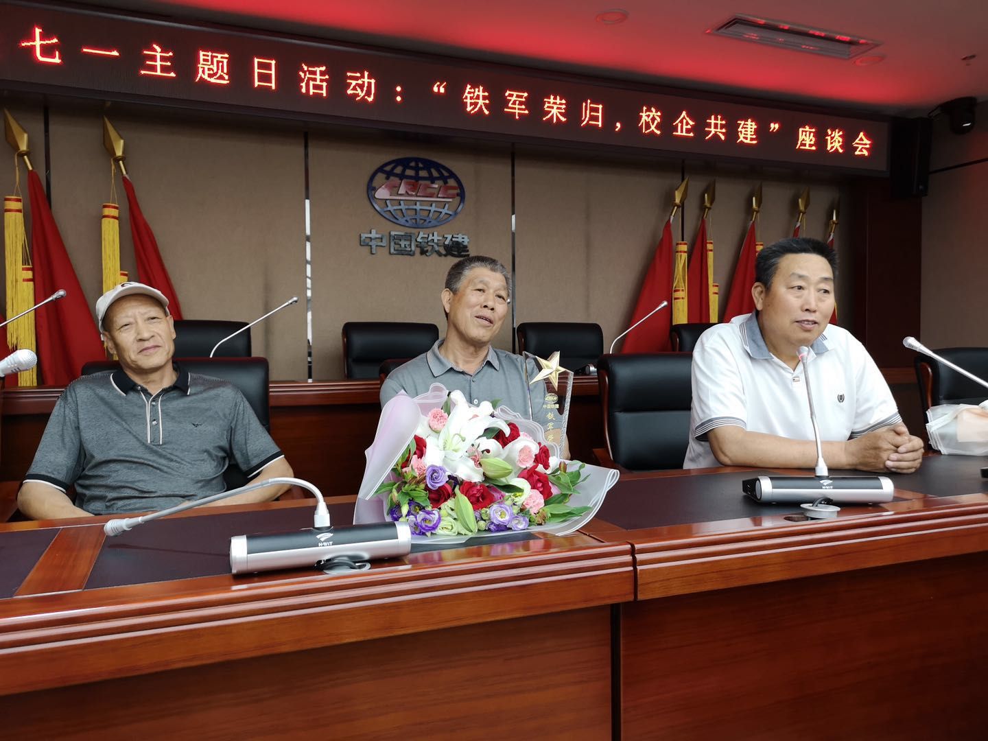 随后,“铁军荣归,校企共建”座谈会开始。本次座谈会邀请了王清月、杨润世和孙继秋三位铁道老兵以及中财校友袁爱文、姚文超、彭开、张凯等参加。