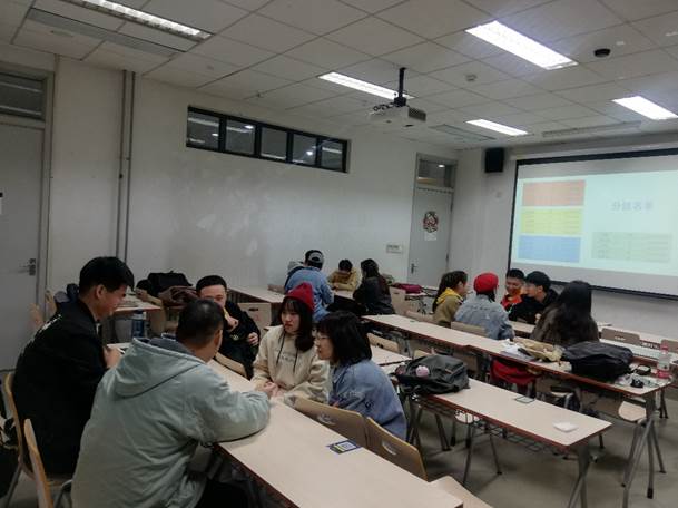 接着进行的是共同讨论、一起学习环节。本支部二十名团员被随机分入四个组,每组五人,就“疫情封闭期间的感受”、“向抗疫先锋致敬”、“观看纪录片的感悟”、“校园疫情防控”等主题进行了近十五分钟的交流。随后,每小组派出一名成员做分享汇报。