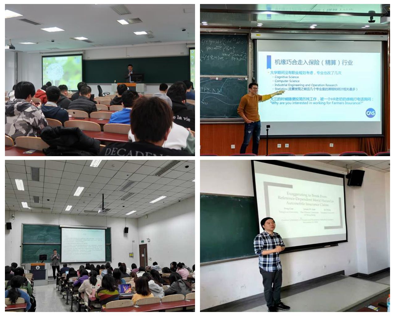为提高学生的学术素养,新葡萄官网先后组织了数十场学术讲座、学术探讨校友沙龙等活动,先后邀请了药联健康联席主席陈嘉先生、大童保险服务董事长兼总裁蒋铭先生、阳光保险集团精算部副总赵星博士、英国精算师协会亚洲区首席代表李文立女士、英国精算师协会东亚区协调员张婧女士、武汉大学经济与管理学院潘国臣副教授、中国社会科学院金融研究所副研究员王向楠博士、北京大学经济学院姚奕副教授、清华大学经济管理学院郑捷副教授等为新葡萄官网学生讲学,分享他们在学术方面的经验,为同学们搭建了更好的学术交流平台,带来了一场场知识盛宴。