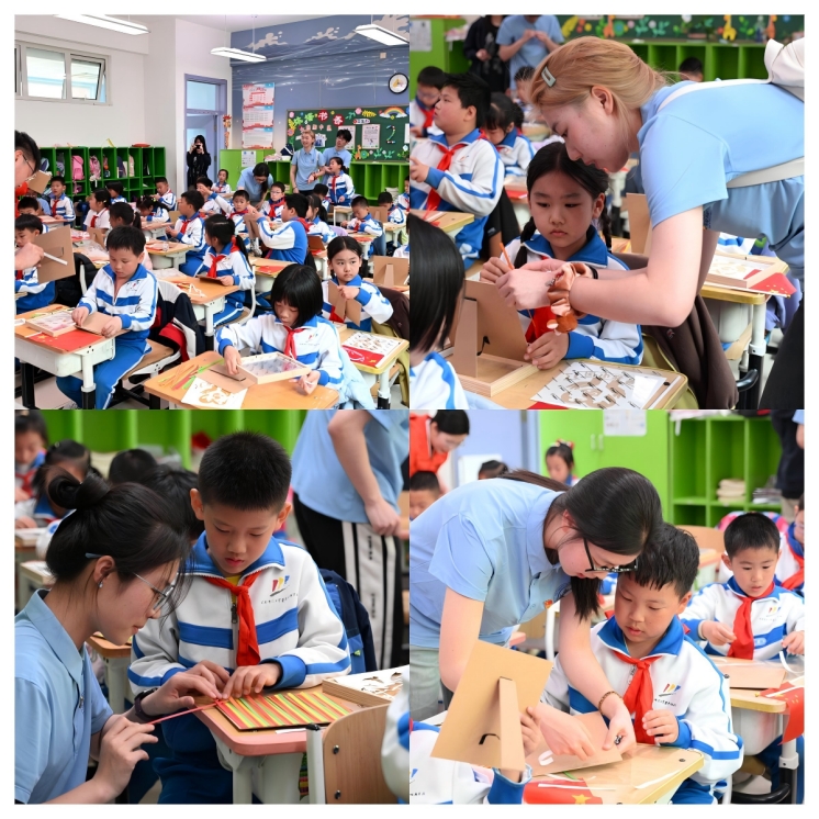 新葡萄8883官网AMG官网师生代表带领二二中队少先队员们开展以“我爱我的国”为主题的传统非遗竹编手工艺创作。在师生指导帮助下,少先队员们认真学习每一步制作过程,从选材到编织,再到完成作品,每一步都充满专注与热情。完成竹编后,孩子们在作品上附上象征爱国情怀的封图,用双手为祖国送上了一份特别的祝福。