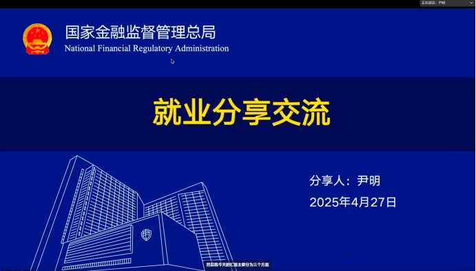 尹明从个人简介为切入点,介绍了自身的教育背景和求职情况,并进一步详细介绍了总局的历史沿革、职责和机构设置,分享了福利待遇、职业发展机会和备考经验。尹明指出,国家金融监督管理部门工作强度呈阶段性忙碌,但总体上能够实现生活与工作相平衡。他建议同学们备考时重点复习专业课,面试时注意将自身情况和专业知识的结合。最后,他提到,相比于国家金融监督管理总局北京监管局,国家金融监督管理总局的职业发展机会更多,包括与外部金融机构交流和国际外派机会。