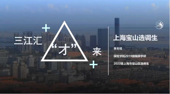 李天悦,2022届精算学硕,现就职于上海市宝山区人民政府(选调生)。