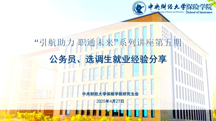 下一期,学院将邀请2025年应届十几位拟入职中国人保、中国人寿、中国平安、公务员(选调生)以及互联网大厂等知名企业的学长学姐,分享他们在求职过程中的鲜活经验和“避坑指南”。同学们也可以畅谈自己的困惑与期待,让思维碰撞出智慧的火花。敬请期待!
