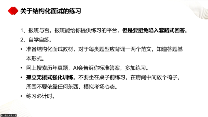 秦少鹏分享了河南省定向选调的考试流程和备考经验,强调了岗位选择、资格审查、笔试和面试准备需要注意的细节。他分析了河南定向选调的任职要求,建议备考时要重视行测和申论,面试时要避免套路化回答,融入个人思考。最后,他讲到,河南选调的面试是结构化面试,同学们要提前熟悉题型和答题技巧。