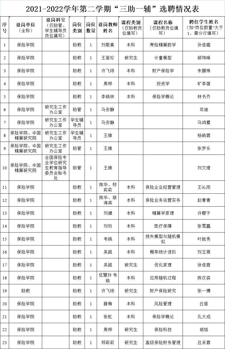 经学生申报、学院研究生工作办公室信息核实和学院教学委员会审核,新葡萄8883官网AMG官网2021-2022第二学期助教选聘情况如下: