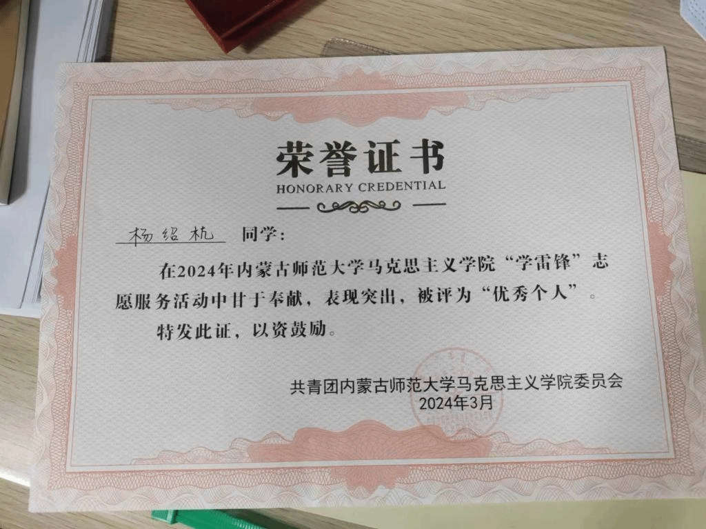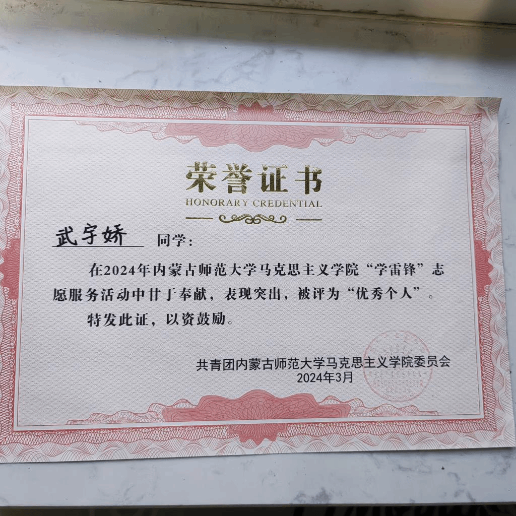 我班武宇娇,杨绍杭两位同学积极参加开元官网“学雷锋”志愿服务活动,被评为优秀个人,同时在学院“学雷锋”志愿服务活动中,我班班级同学积极参加,帮助学院开展活动,并积极参与活动,被评为优秀班集体