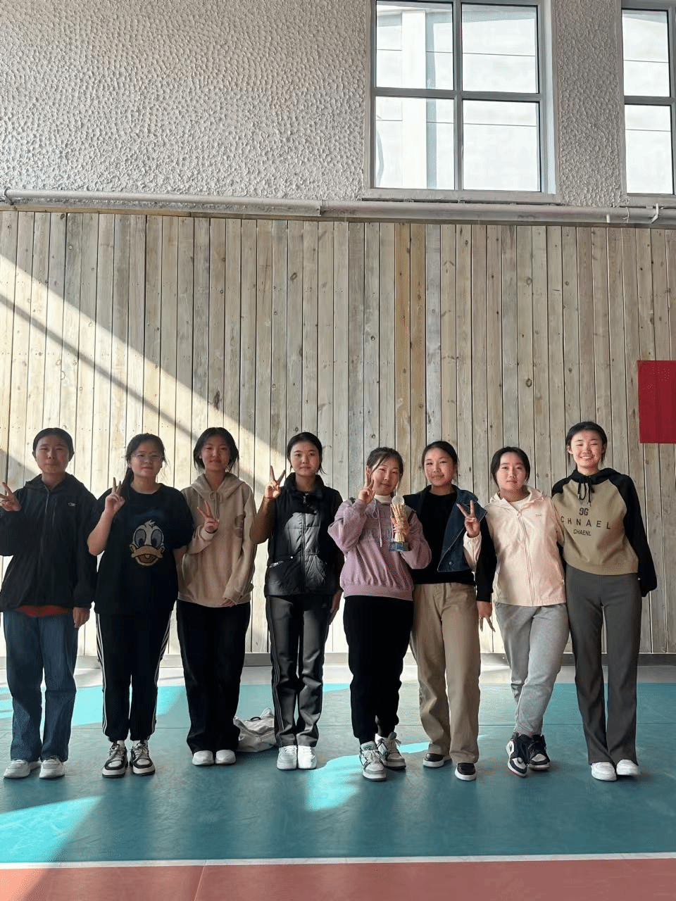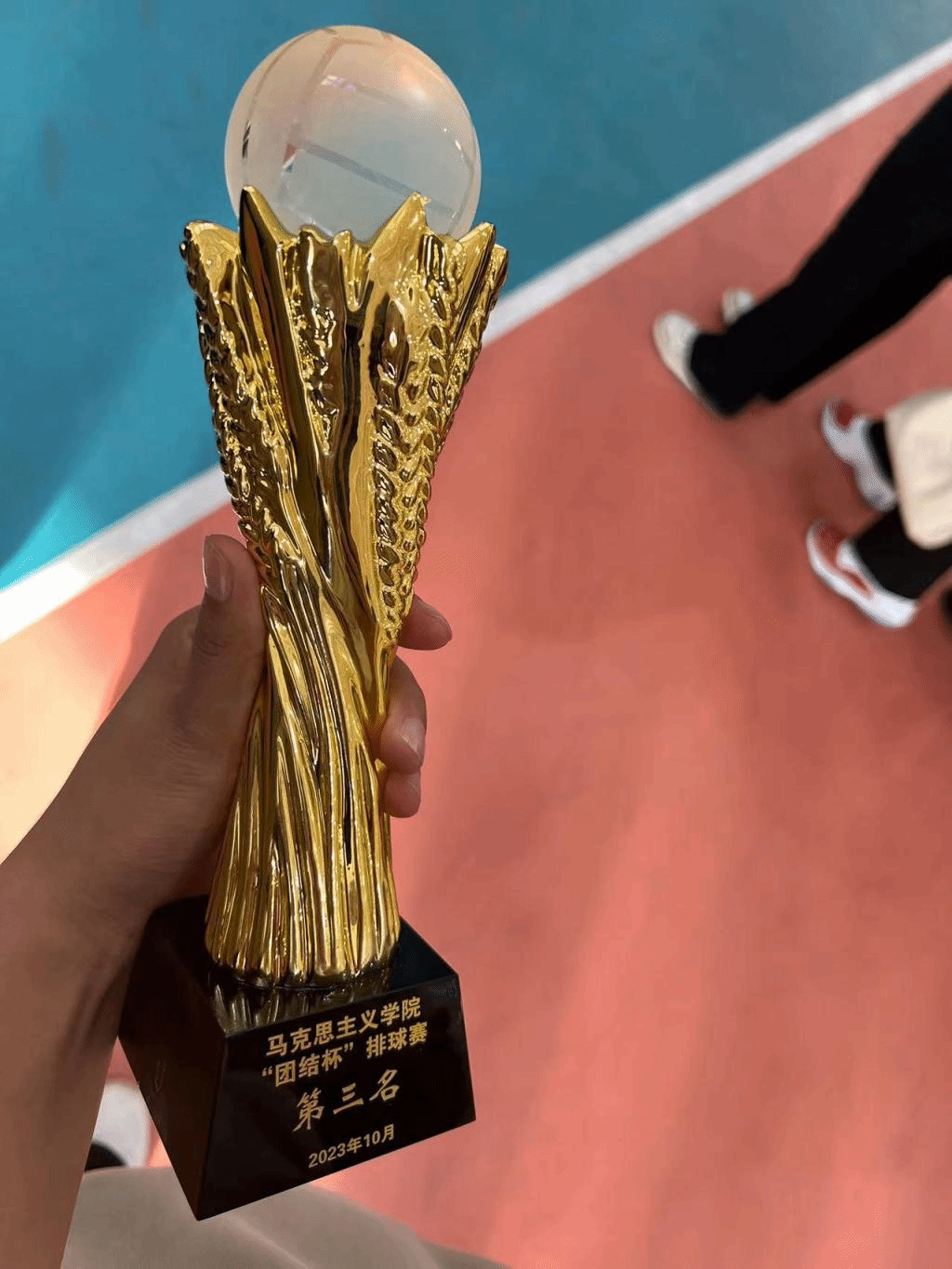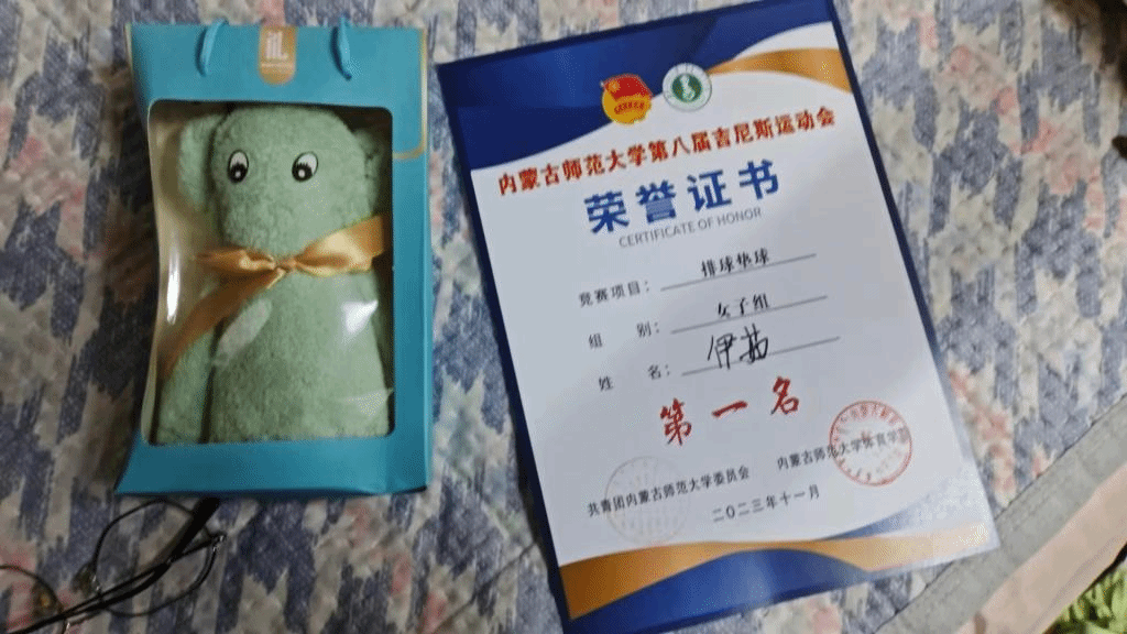 我班陈晶晶,常莹莹,伊茹,伊拉贡,杨有丽,胡超然,娜仁珠拉,萨其日娜等八位同学,代表班级参加了2023--2024年ky开元集团官网团结杯排球比赛,经过激烈的角逐,获得了第三名,替班级获得了荣誉。