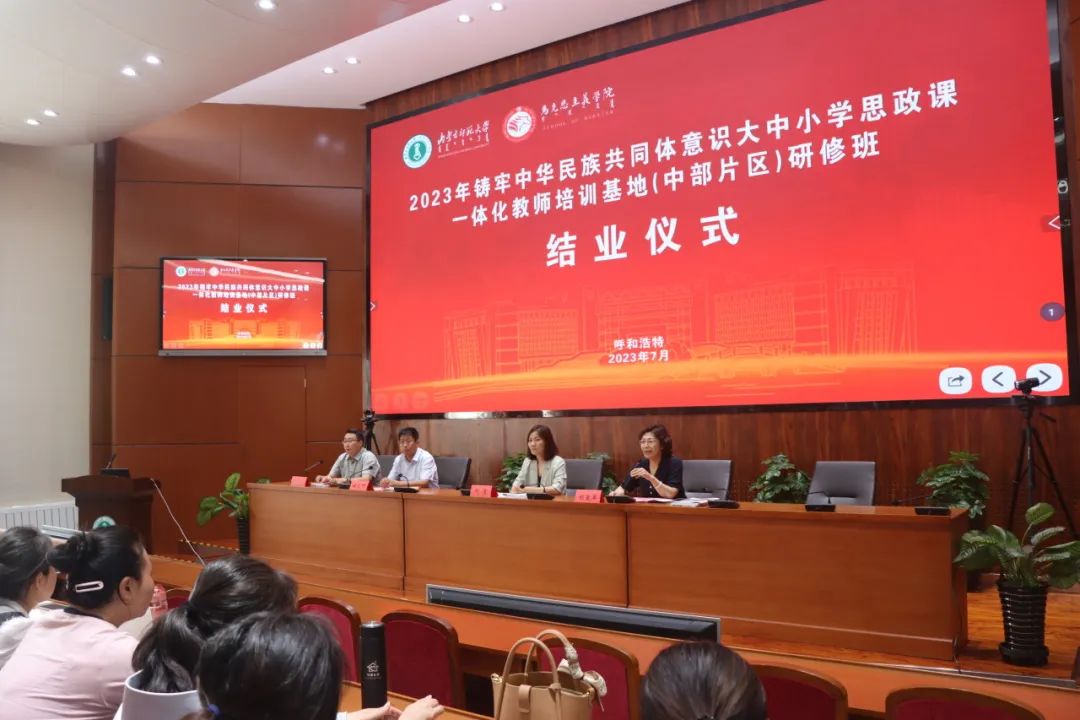 在仪式中,内蒙古自治区教育厅学工处副处长刘惠表示,此次研修班举办得十分成功。鼓励各位学员在回到一线岗位后,要将在培训班中所获得知识不断融入到教学中去,结合大中小学思政课一体化建设的教学经验,立足于大中小思政课一体化建设的问题导向和目标导向,有效推进铸牢中华民族共同体意识融入大中小学思想政治教育课程。她强调,要理直气壮地讲好思政课,在面对鲜活的社会变迁、快速的知识更新、复杂的信息环境时,思政课教师要为时代画像、为时代立传、为时代明德,引领青少年的价值选择。