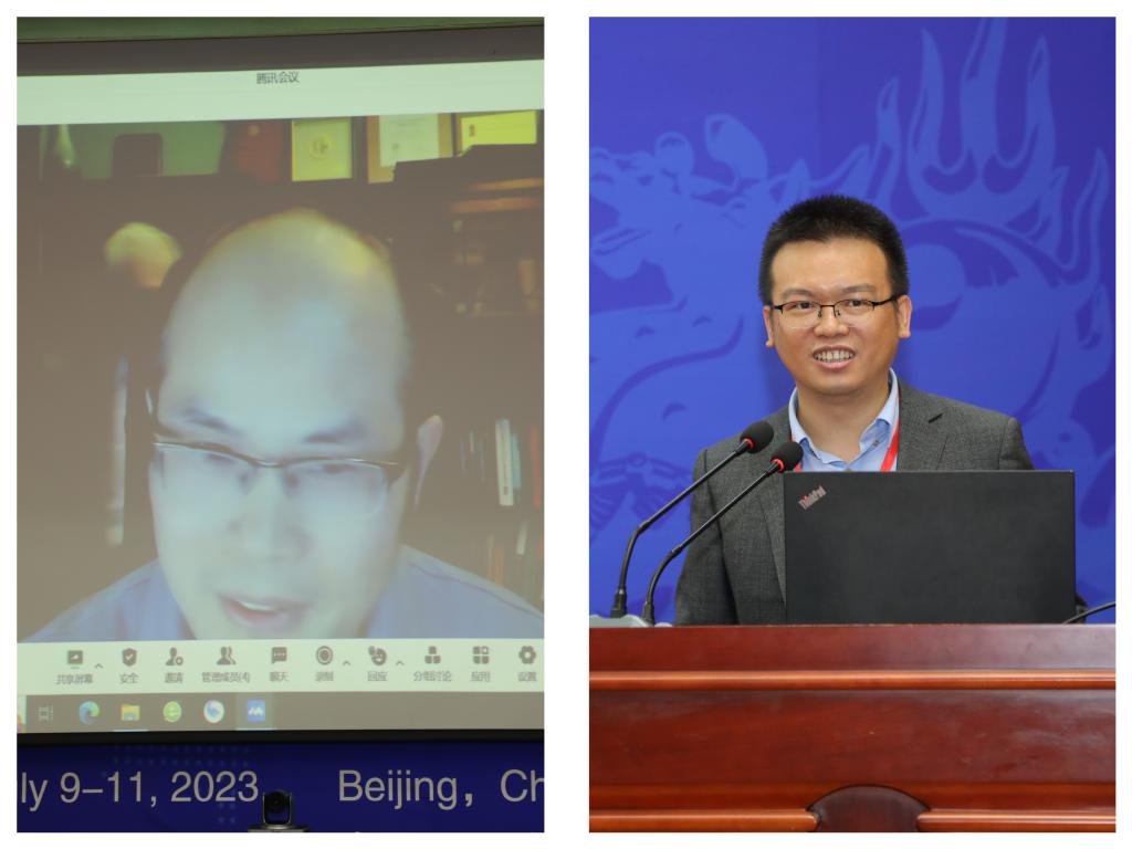致辞结束后,进入学术报告环节。首场大会报告由加拿大滑铁卢大学翁成国教授和中国精算研究院池义春研究员主持,报告嘉宾分别是哥伦比亚大学周迅宇教授、南方科技大学李仲飞教授和清华大学王小群教授。他们围绕气候变化风险、资产管理、量化金融和机器学习领域的研究与实践做了精彩报告。