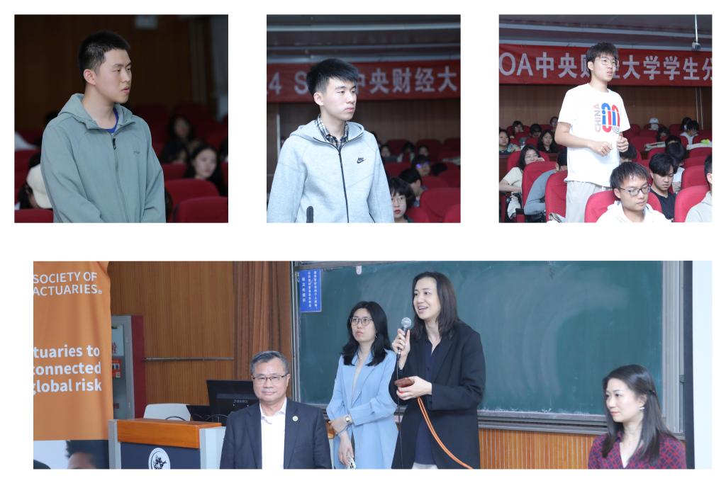 在随后的提问环节中,学生们从精算考试的重要性、数学知识拓展的必要性以及人工智能对精算行业的影响等多角度积极进行提问。陈伟森教授、谢思女士、SOA东亚及东南亚区域总监李晶鑫女士以及SOA精算师协会中国活动&市场专员李劢女士,从各自的专业角度对这些问题进行了全面而深入地回答。