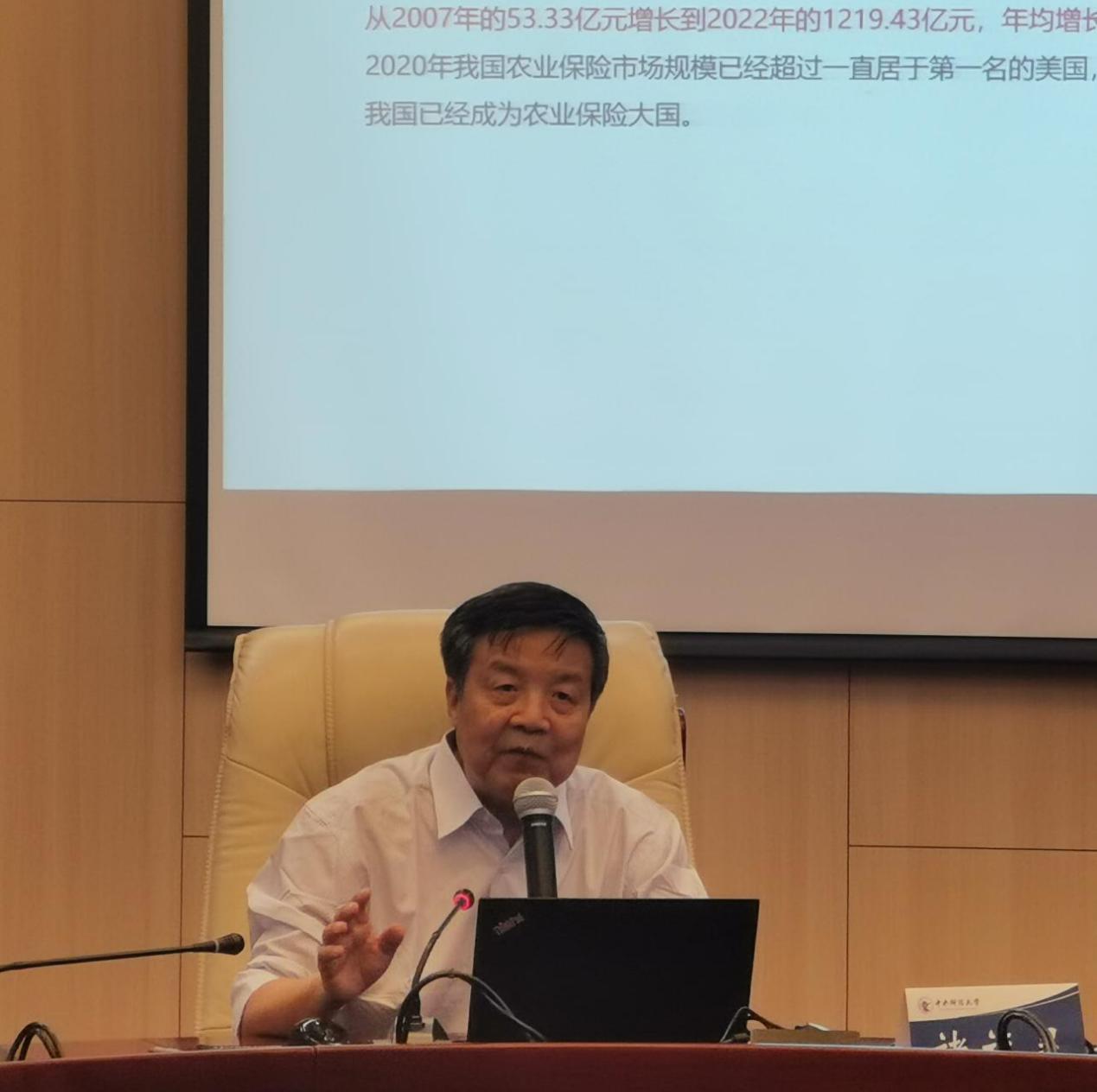 首都经济贸易大学保险系博士研究生导师、农村保险研究所所长庹国柱教授作报告。庹国柱教授指出:我们现在是一个保险大国,但还不是保险强国。我国从农业保险大国迈向农业保险强国,除了需要进一步加大包括财政、税收等政策支持力度外,在组织管理方面还需要努力完善和优化。其中,一个重要方面就是需要改革政策性农业保险的管理制度,建立一个强有力的实体性管理机构。