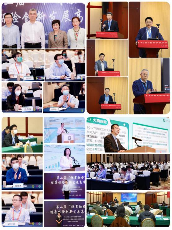 上海医保局副局长张超、天津医保局副局长高连欢、北京石景山区医保局局长李凤芹、鹰潭医保局局长万挺春等地区医保局领导,国家卫健委卫生发展研究中心健康保障研究部副主任郝晓宁、中国社会保障学会副秘书长严娟、复旦大学公共卫生学院教授应晓华、中国医科院医学信息研究所健康与医疗保障研究中心主任李亚子、中国财政科学研究院社会发展研究中心副主任朱坤、中国健康保障创新实验室特邀研究员唐晶、北京群畅健康管理应用技术研究院执行院长袁野等专家学者,以及中国人保财险、中国人寿、中国再保险、泰康养老、众惠相互等保险公司领导,镁信健康、圆心科技、商涌科技、福寿康医养服务公司等科技公司,辉瑞医药负责人,分别从理论研究与探索、创新实践、行业发展等角度,分享了在多层次医疗保障体系建设的国家战略下,基本医保与商业健康保险如何定位与协作,特别是城市定制型商业医疗保险、大病保险与长护险的商保经办、带病体保险创新,进行了充分的分享与交流。