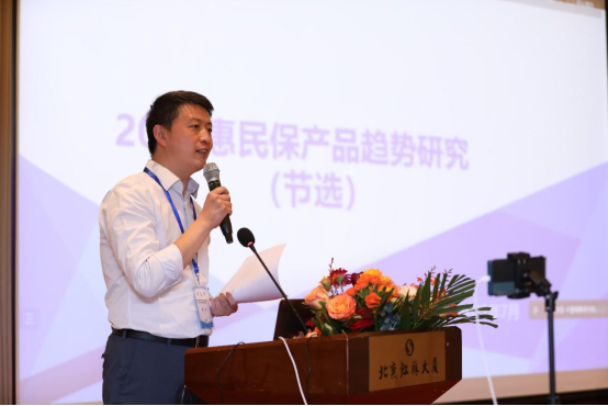 中国人寿再保险有限责任公司李奇总经理助理报告了《我国惠民保发展现状及展望》,他从惠民保整体开展情况、分布区域变化、业务品质变化、参与主体、政府支持与规范方式、特色责任等方面对惠民保开办做了详细阐述,并分析了惠民保未来升级发展方向。