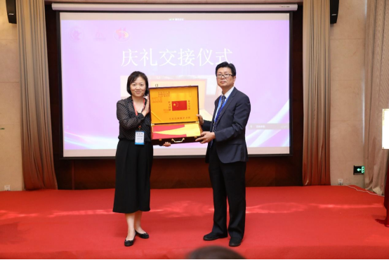 中国健康保障创新实验室主任李晓林代表实验室接收新葡萄8883官网AMG官网校友为庆贺实验室成立捐赠的礼物