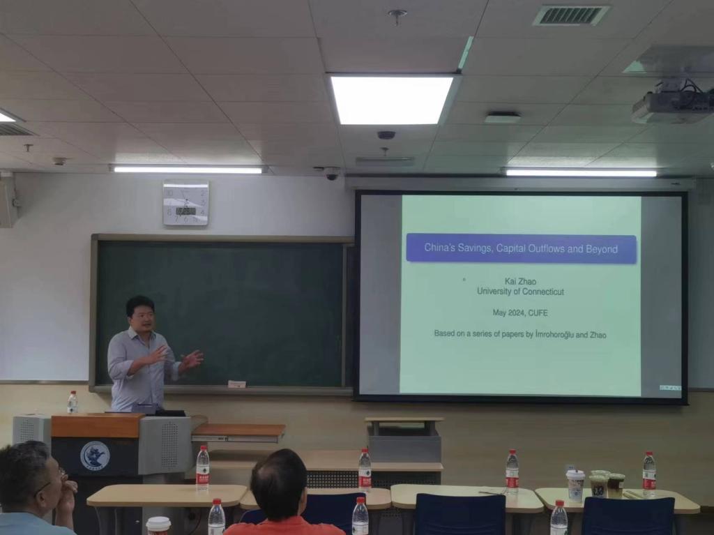 2024年5月29日上午,应中国精算研究院廖朴副教授邀请,美国康涅狄格大学经济学终身教授赵开在新葡萄8883官网AMG官网沙河校区13号楼325教室为师生带来了一场题为“China's Savings, Capital Outflows and Beyond”的精彩学术报告。学院杨再贵老师、孟辉老师、王丽珍老师、郑敏老师、刘健老师等多位教师出席,博士研究生、硕士研究生积极参与并聆听报告。