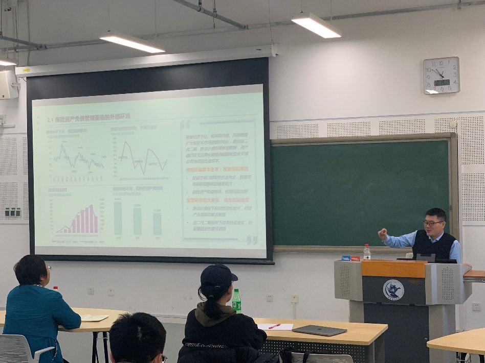 在讲座的最后,同学们也积极提问,例如保险监管是否应将偿二代负债折现率从750日调整为60日,新准则下是否会进行短期利率模型研究,保险公司股票投资时是否有特定方法论或一套特定策略等。刘鑫先生也对此给出了全面和详细的解答。