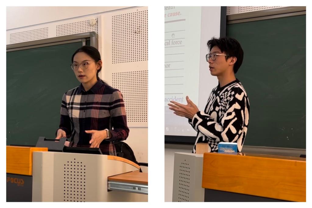 同学们的研究兴趣涉及多个领域,包括保险公司财务绩效与范围经济效应、长期护理保险与儿童教育水平的关系、在替代率约束下如何实现养老制度社会效用最大化,保险公司如何开展线上承保等。在同学们的分享过程中,Kwon教授认真听取了报告,并从论文题目的拟定、研究定位,以及投稿会议和期刊的注意事项等方面对同学们的研究计划进行了细致点评。